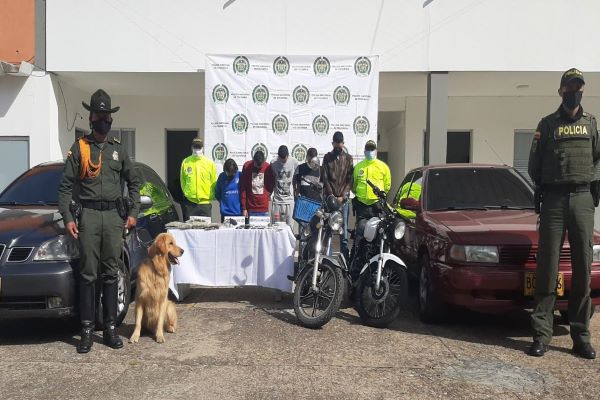 Mediante entrevistas, agentes encubiertos, reconocimientos en álbum fotográfico e interceptación de comunicaciones, se logra desarticular este grupo, responsables de la distribución de estupefacientes en gran parte del municipio. Cinco órdenes judiciales, de allanamiento y registro proferidas por la fiscalía general de la nación nos permiten, además de las capturas la incautación de: 2500 gramos de marihuana - un arma de fuego tipo revolver calibre 38 mm - ocho equipos celulares - dos vehículos automóviles - dos Motocicleta Se logró establecer su modus operandi el cual consistía en el almacenamiento, distribución y venta de sustancias estupefacientes, en la modalidad de domicilio, en parques o zonas rurales del municipio y específicamente a consumidores conocidos para evadir los controles.