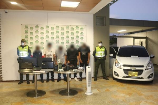 En el primero de los hechos, unidades del Modelo Nacional de Vigilancia Comunitaria por Cuadrantes capturaron a cinco personas señaladas como presuntos responsables del hurto a una vivienda en el corregimiento de Dapa, donde al parecer habrían amordazado e intimidado con armas a los residentes, entre los que se encontraba una menor de tres años.