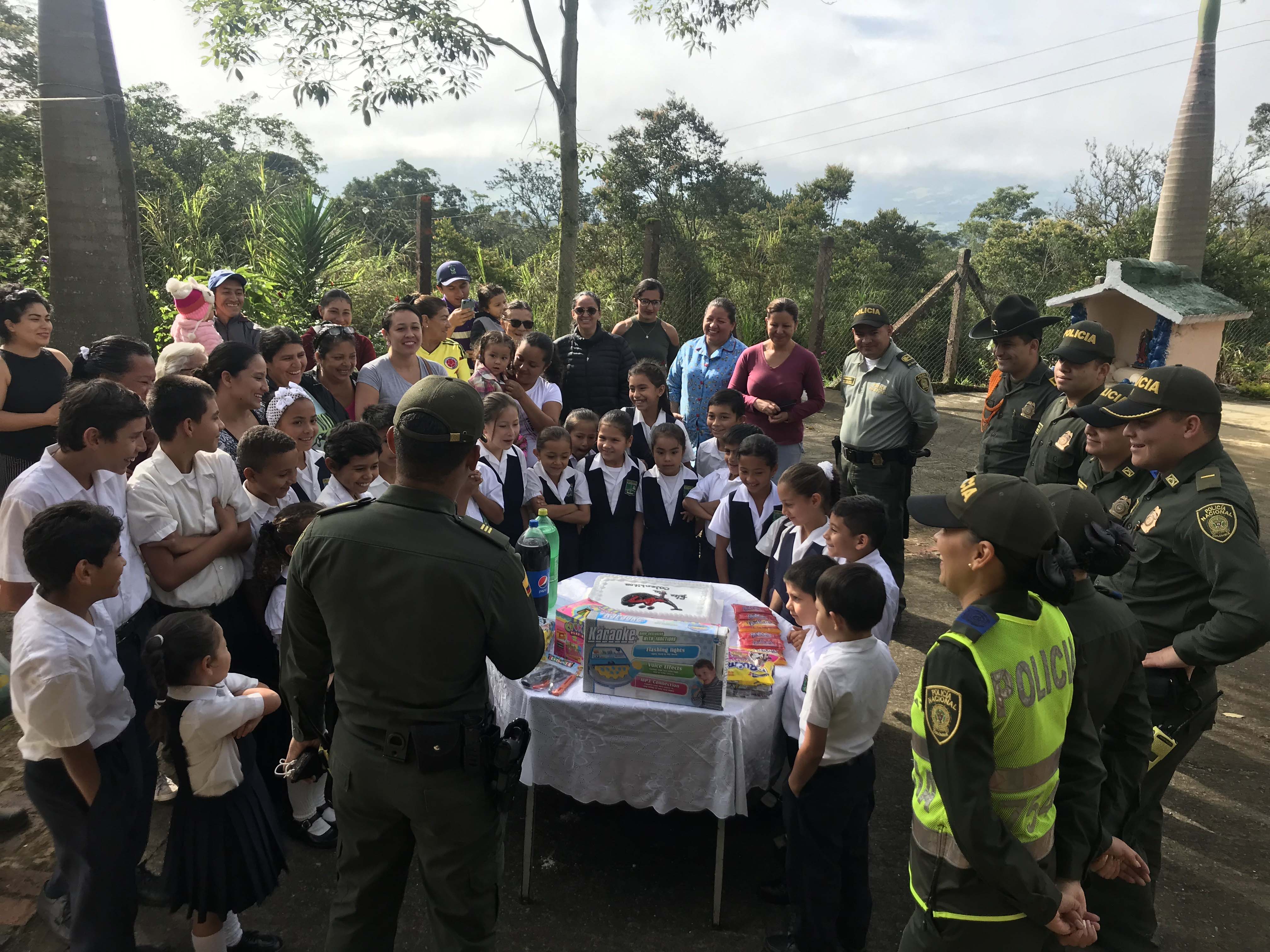 Se realizó una actividad conmemorativa en la vereda ‘El Amarillo’ del municipio de Barbosa donde se integraron a todas las familias que conforman este sector, generando un espacio de alegría, esparcimiento y enseñanza a todos los niños, niñas y adolescentes, generando un vínculo de confianza con la Policía Nacional, contando con la participación de líderes sociales, la administración municipal y el personal policial que conforma la Estación de Policía Barbosa, donde compartimos en compañía de la comunidad de un espacio recreativo y lúdico disfrutando con las familias de juegos, actividades culturales y educativas las cuales están encaminadas al mejoramiento de la convivencia y seguridad ciudadana.