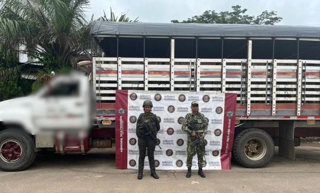 En el marco de la ofensiva contra el abigeato, el Departamento de Policía Meta en coordinación con el Ejército Nacional fortalece las estrategias operativas para contrarrestar este flagelo en cada uno de los municipios del Meta. Como resultado de las acciones interinstitucionales, durante las últimas horas se registró en área urbana y rural del municipio de Puerto Lleras la incautación de 50 semovientes bovinos que eran transportados de manera irregular por dos sujetos de 51 y 60 años de edad.