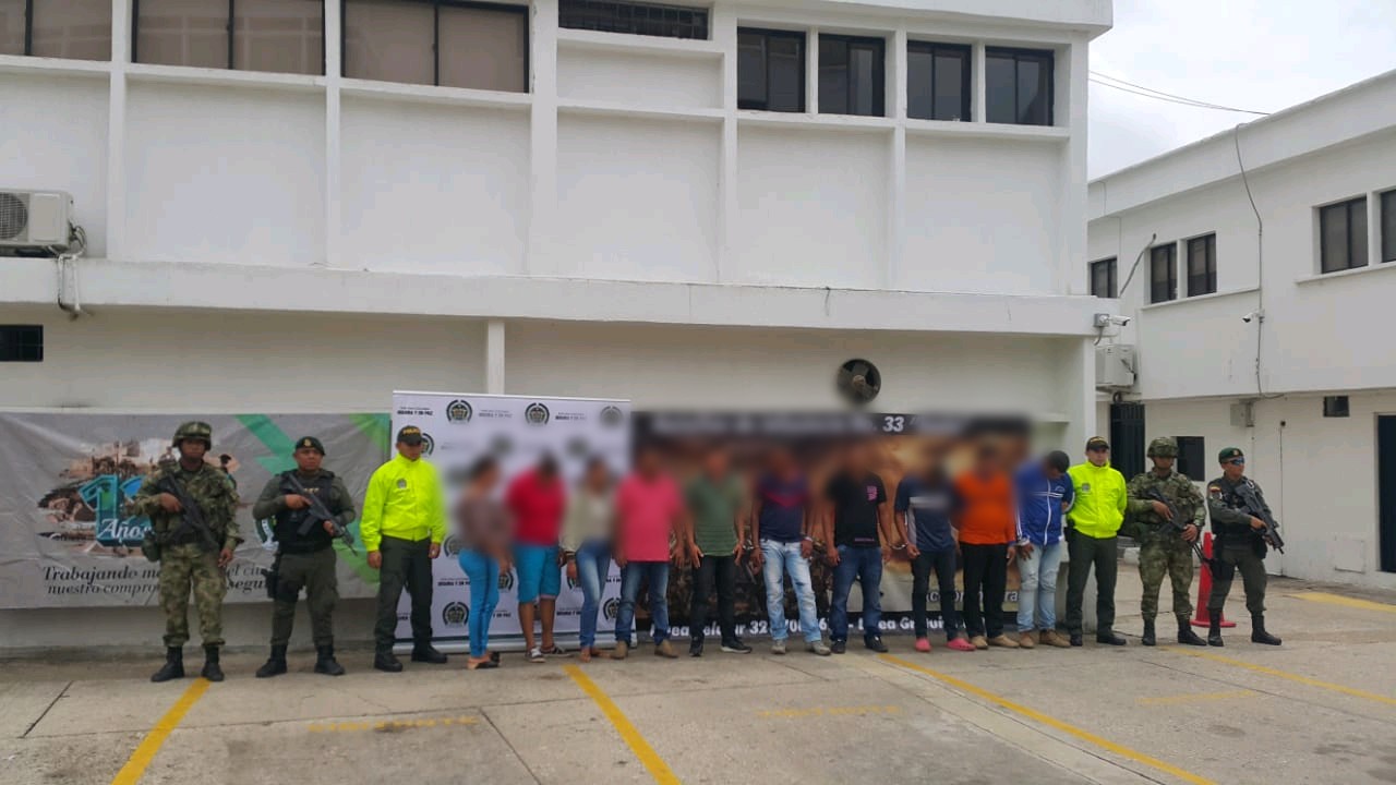 Mediante un trabajo coordinado entre la Policía Nacional a través de la Seccional de Inteligencia e Investigación Criminal, Fiscalía General de la Nación y Ejército Nacional, se realizaron nueve diligencias de allanamiento y registro, lográndose la captura de once personas por orden judicial, las cuales presentaban antecedentes judiciales por los delitos de concierto para delinquir, homicidio, tráfico de estupefacientes y extorsión, donde además le fueron incautados nueve teléfonos celulares.