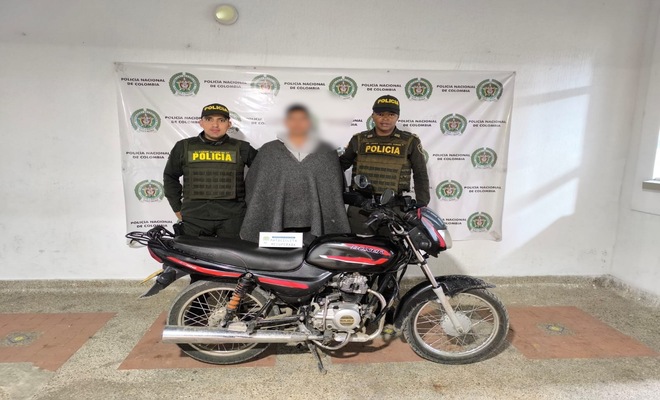 Este resultado operativo se dio cuando al solicitar los antecedentes a la motocicleta en la que se movilizaba esta persona, le figura una solicitud por el delito de hurto, este ciudadano fue capturado y puesto a disposición de la Fiscalia General de la Nación.