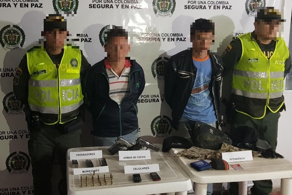 La acción policial inicia cuando luego de tener la información de estos presuntos delincuentes personal del cuadrante se dirigen hasta el lugar, estas personas al notar la presencia de los uniformados emprenden la huida del lugar en una motocicleta color negro sin placa, minutos después son interceptados por la policía, al momento de realizarle el registro a personas se le halló en su poder diferentes elementos de uso privativo.