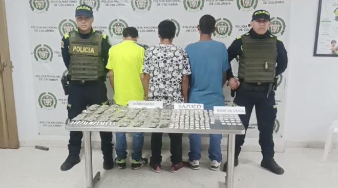 La operación se llevó a cabo en el barrio El Triunfo, donde estas personas se encontraban en vía pública don son sorprendidos con gran cantidad de drogas entre estas 117 papeletas de bazuco, 20 papeletas de cocaína, 43 bolsas hermética que contienen marihuana y 15 cigarrillos de marihuana.