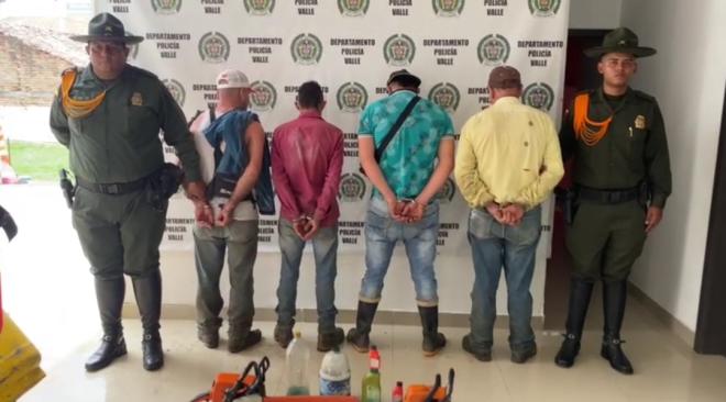 El Departamento de Policía Valle a través de la Seccional de Carabineros y Protección Ambiental (GUCAR), mediante actividades de control ambiental en el corregimiento Andinapolis sector rural del municipio de Trujillo, se llevó a cabo la captura en flagrancia de 04 hombres, quiénes se encontraban adelantando actividades de tala indiscriminada de guadua sin permiso de autoridad ambiental, mediante la utilización de motosierras, generando con ello un impacto ambiental negativo.