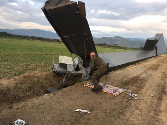 Esta información fue crucial para que la Policía Nacional a través de sus hombres antinarcóticos realizaran un despliegue operacional conformado por 85 hombres, que luego de analizar y planear se desplazaron al lugar en mención en coordinación con la Fuerza Aérea, al llegar encontraron una aeronave tipo ultraliviano de fabricación artesanal sin matrícula e identificación, la cual se encontraba al borde de la pista y dentro de ella se halló 171 kilos de clorhidrato de cocaína que estaban en la parte de la cabina.