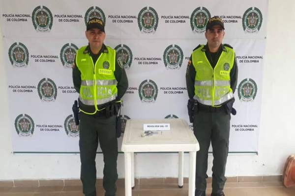 En atención a la estrategia integral contra delitos que afectan la vida humana, momentos en que personal del cuadrante realizaba planes de registro e identificación a personas, observan a un sujeto desde la distancia el cual se encontraba en la calle 30 con carrera 16ª “parque” barrio la Polania del municipio de Honda, quien al notar la presencia policial arroja un elemento en un anden aprendiendo la huida sin lograr su captura donde al momento de realizarse la verificación es hallado 01 arma de fuego tipo revolver calibre 22 niquelado con 01 cartucho para el mismo.