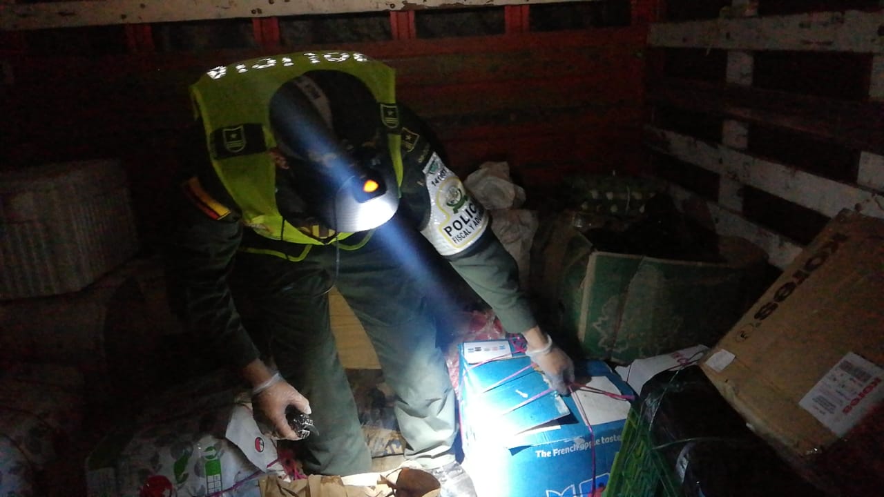 A través de un efectivo trabajo de control en vías nacionales por parte de unidades adscritas a la Policía Fiscal y Aduanera POLFA, en la vía que de Bucaramanga conduce al municipio de Rio Negro (Santander), se logra interceptar un vehículo tipo camión, donde al realizar inspección se encuentra 400 kilogramos de carne canal de caprino y 1.115 kilogramos de queso en mal estado, que eran transportados en cajas de cartón sin las condiciones fitosanitarias y cadena de frío necesarias para su conservación.