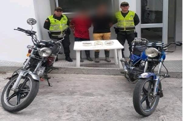 El Departamento de Policía Norte de Santander realizó la captura de dos personas y la aprehensión de dos menores de edad, que en el momento del registro se encontraban en dos motocicletas y se les halló tres kilos y 26 gramos de base de coca y son puestos a disposición por el delito de Fabricación, tráfico y porte de estupefacientes.