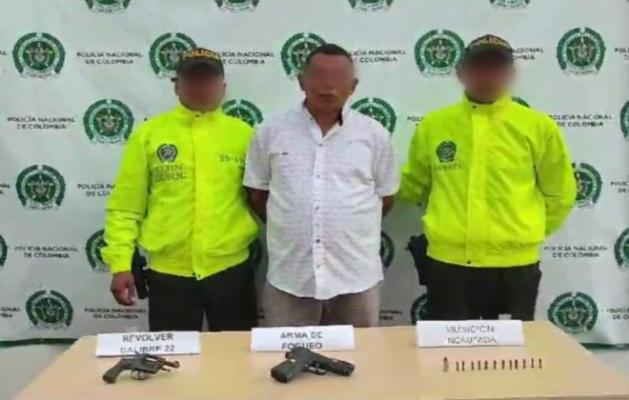 La diligencia de registro y allanamiento se llevó a cabo en un inmueble ubicado en la carrera 23ª del barrio Dulce Nombre, en donde fue capturada esta persona en situación de flagrancia al hallarle en su poder un arma de fuego tipo revólver calibre 22 milímetros con 13 cartuchos para el mismo y un arma traumática con 01 cartucho calibre 38 milímetros.