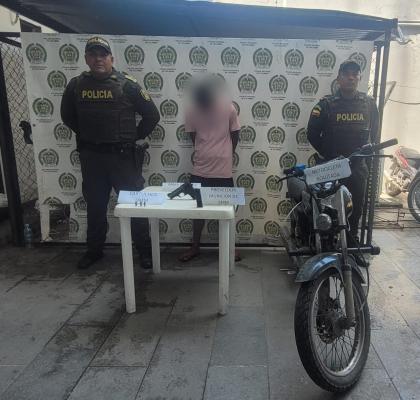 Los operativos se adelantaron en diferentes jurisdicciones del departamento: el primero de ellos, en el barrio Centro de la capital del Ariari, municipio de Granada, donde uniformados del Modelo Nacional de Vigilancia Comunitaria por Cuadrantes logran interceptar, una motocicleta en la que se desplazaba un sujeto de 26 años de edad y un adolescente, quien portaban entre sus pertenencias una pistola calibre 9 milímetros con tres cartuchos para la misma.