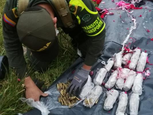 Las unidades de transito se encontraban realizando un puesto de control a vehículos de transporte de carga y pasajeros, al detener un furgón de servicio público que cubría la ruta Tumaco-Pasto y al registrar la carga, encuentran un tubo grande de PVC, que tenía un peso exagerado, al verificar su contenido, encuentran 867 cartuchos para fusil, calibre 5,56 y 158 de calibre 7,62, para un total de 1025 unidades, al verificar el propietario de este elemento, se captura a un sujeto de 33 años de edad, por el delito de fabricación, tráfico, porte o tenencia  de armas de fuego, accesorios, partes o  munición. El capturado y la munición fueron puestos a disposición de la Fiscalía 53 Local de Ricaurte.