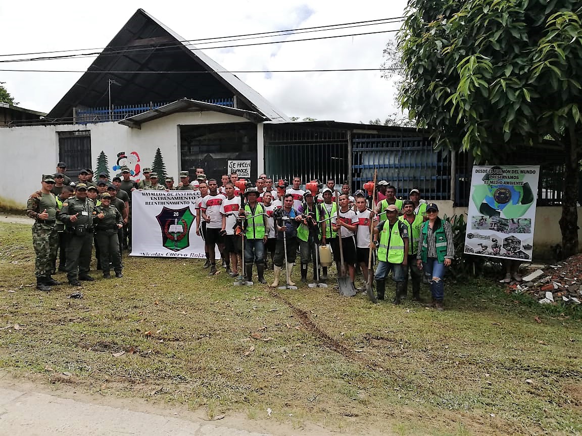 Policía en Amazonas prepara salones a estudiantes para que reciban con motivación el año escolar