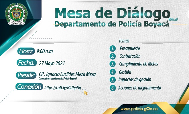 Invitación rendición de cuentas Departamento de Policía Boyacá vigencia 2021