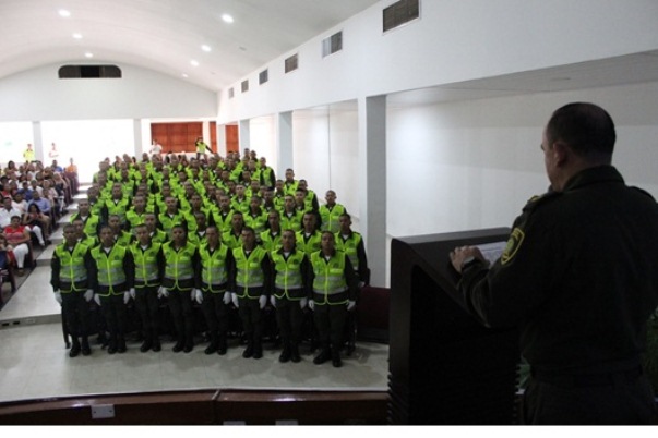 Ceremonia de juramento de bandera de 85 Auxiliares de Policía