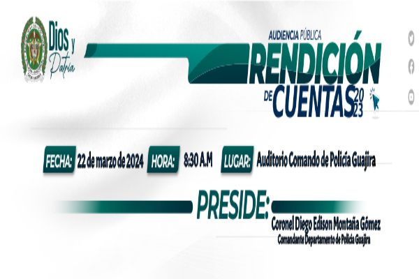 Invitación a la Rendición de Cuentas del Departamento de Policía Guajira vigencia 2023